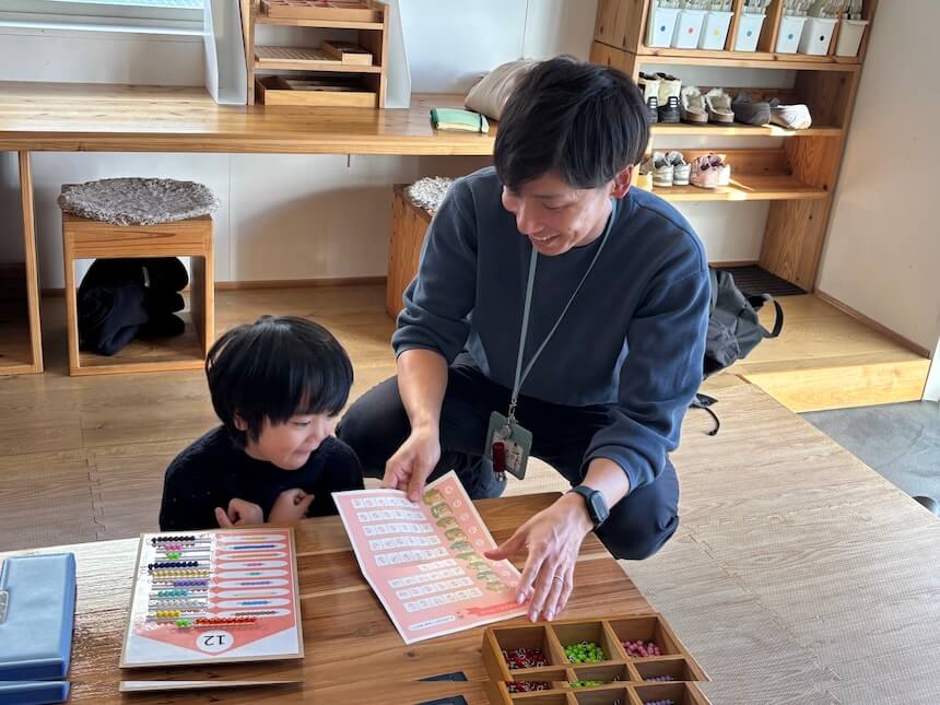 そんな時に松藤さんが、モンテッソーリスクールで実際に使用している教具で算数を指南。すると、くり上がりやくり下がりなど算数でひっかかっていたことが、すっと理解できたのだそうです。